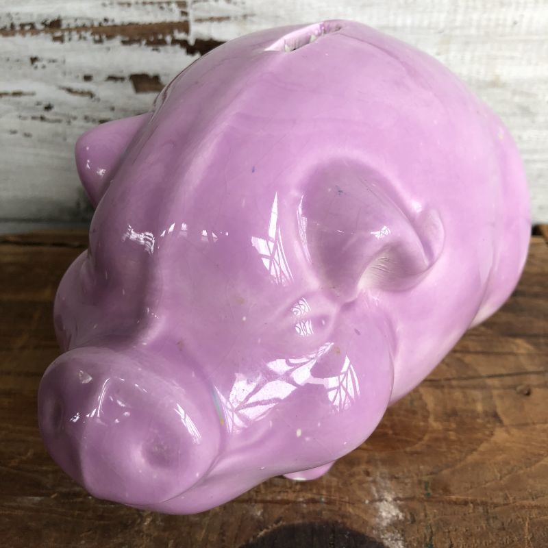 Vintage Ceramic Piggy Bank Pink (J952)