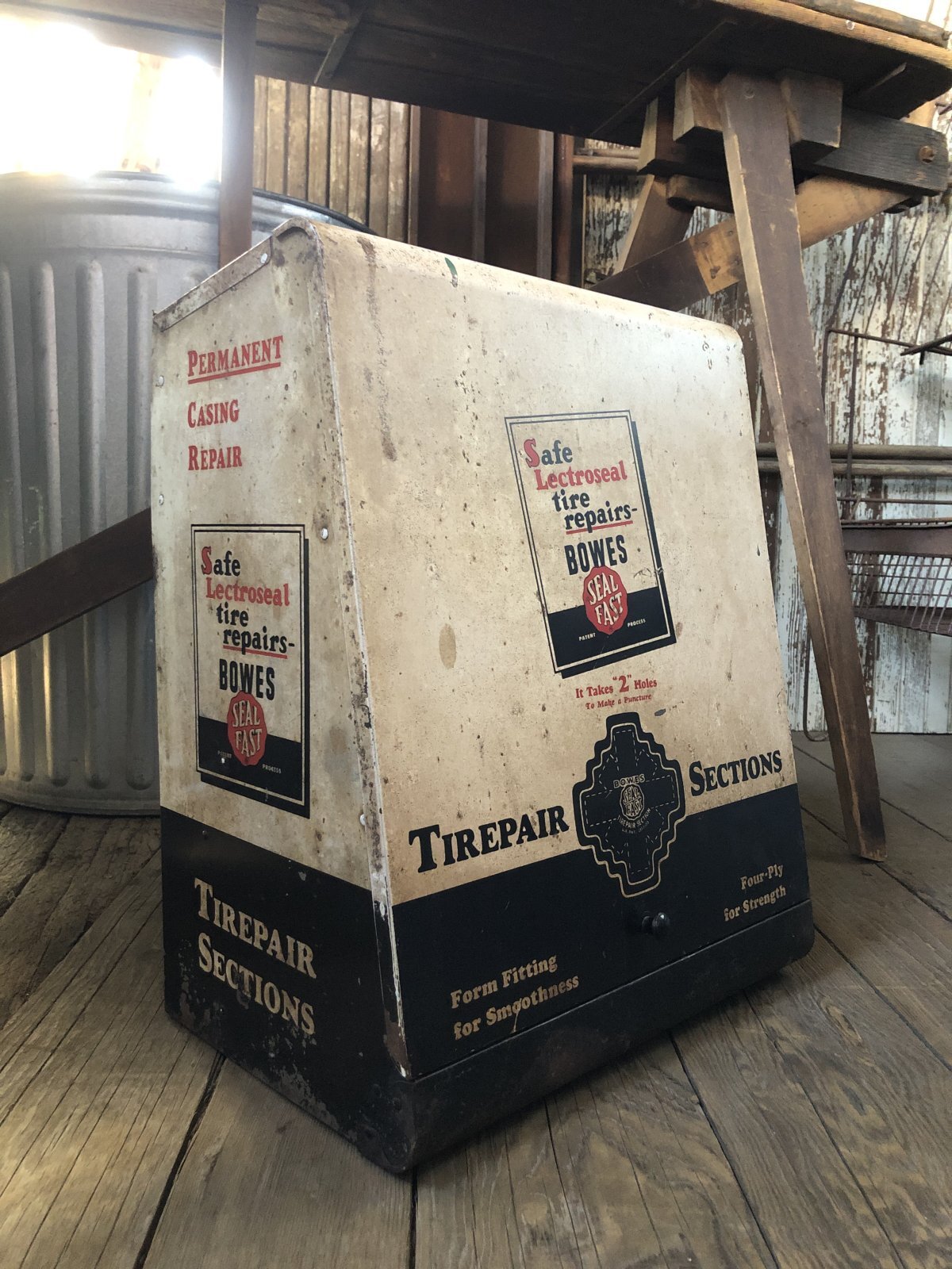 - > 50s Vintage BOWES SEAL FAST Tire Repair Service Station Display Cabinet (R903)