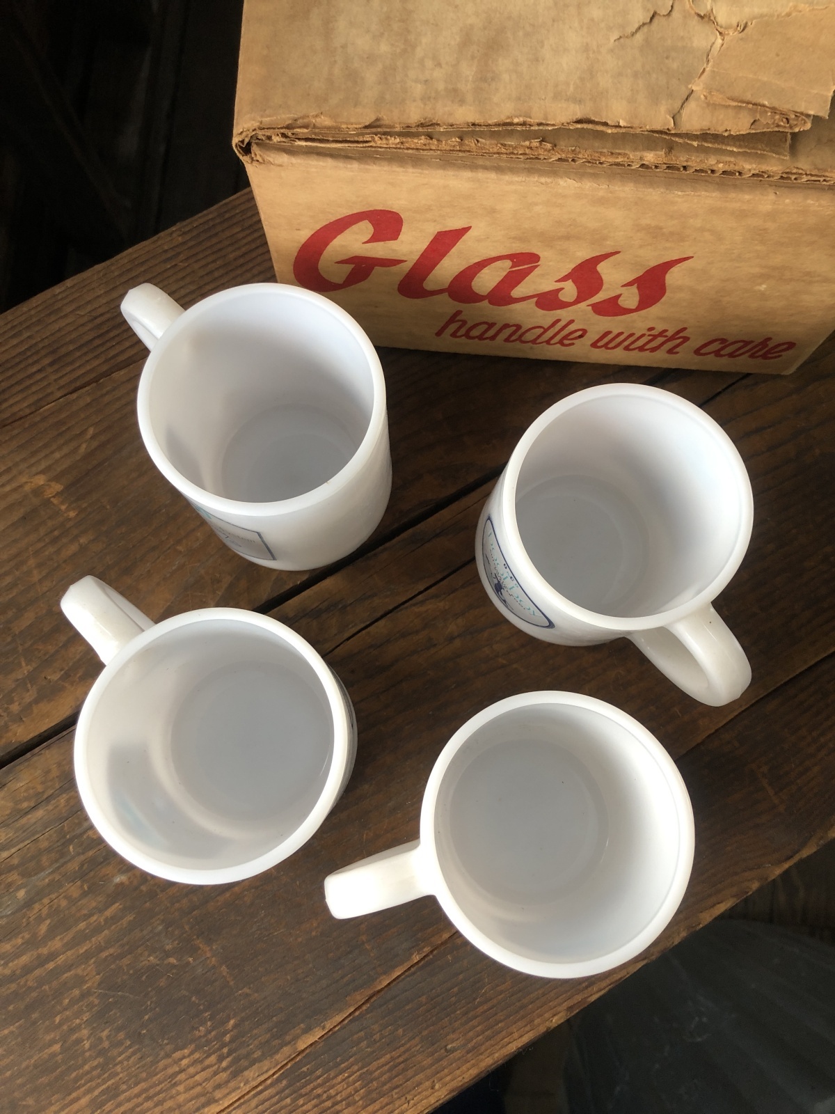 Vintage OMCO Milkglass Mug Dolphin Set (A115)
