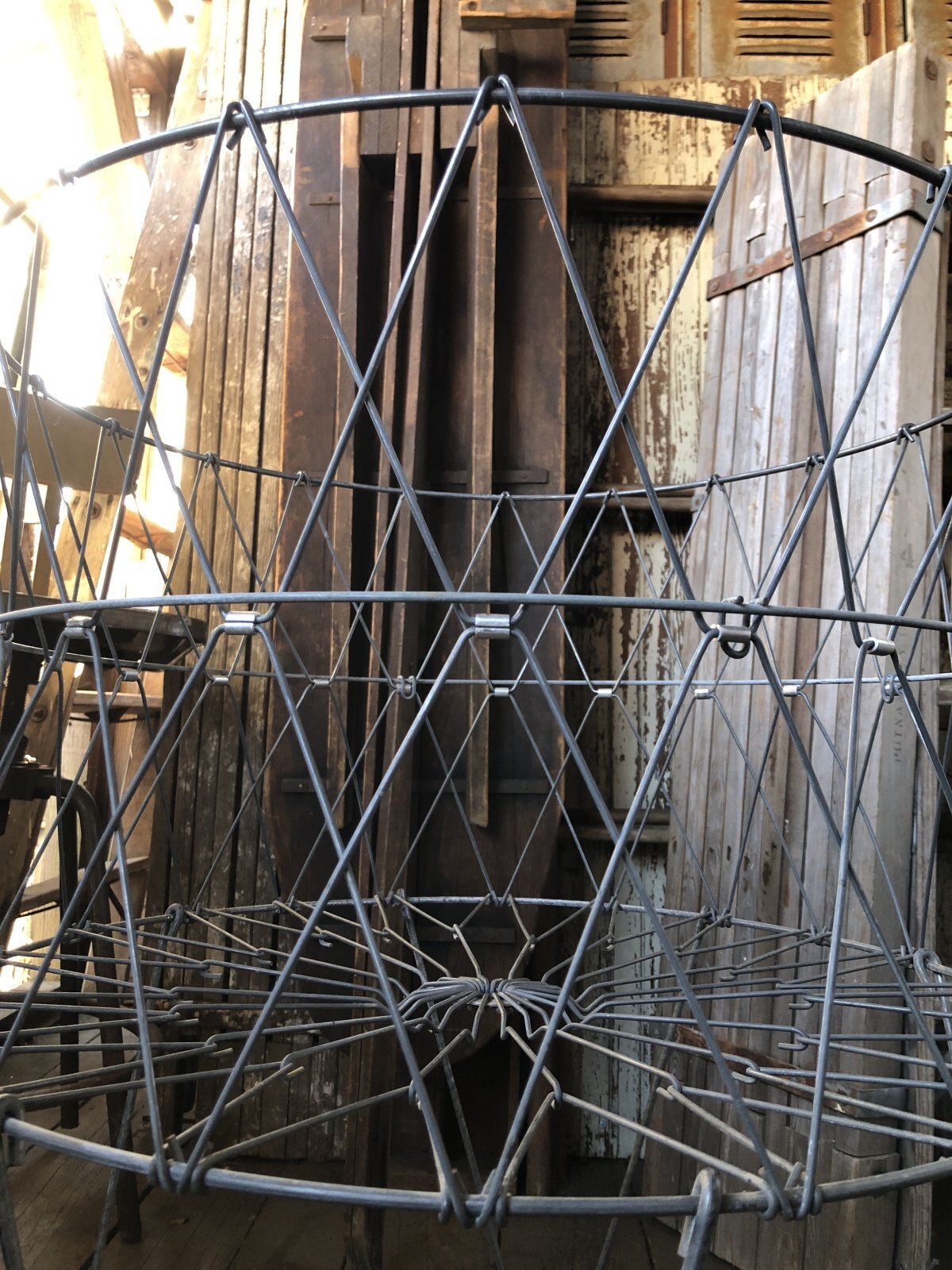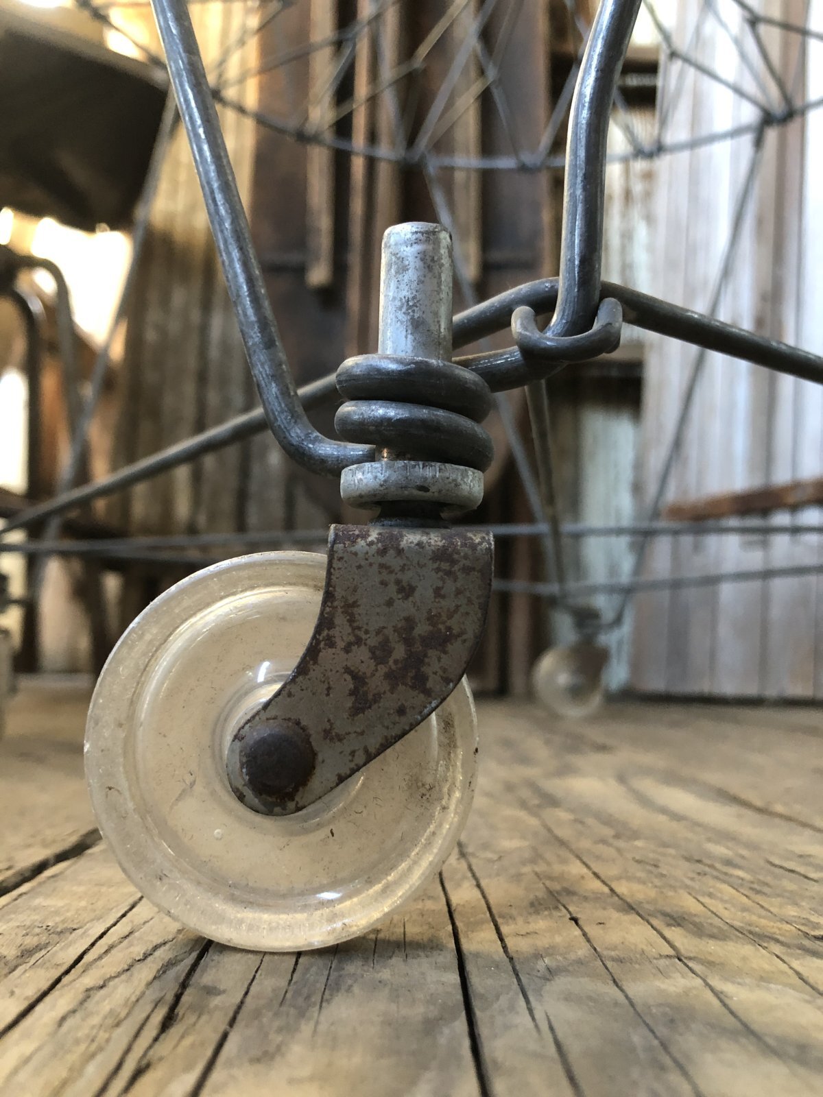 Vintage Metal Wire Folding Laundry Cart Basket on Wheels (A131)