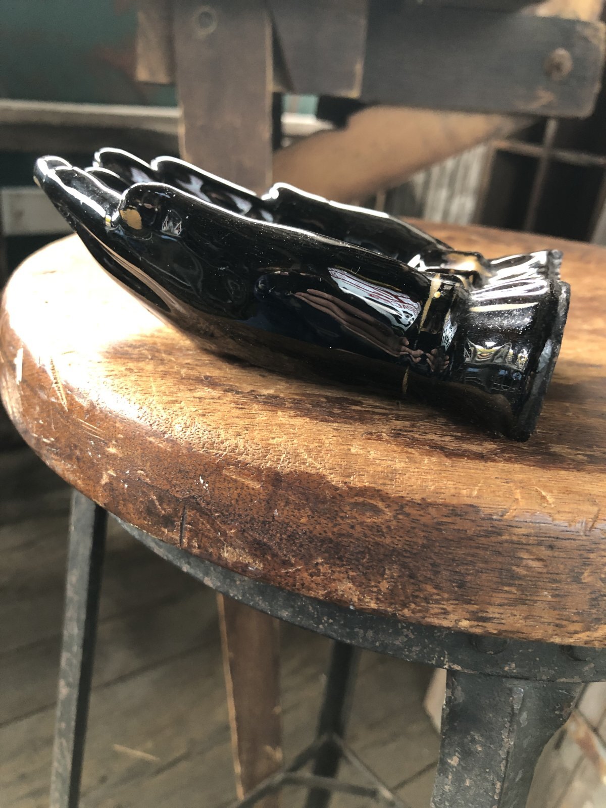 50s Vintage Japan Porcelain Black Hand Ashtray Jewelry Trinket Bowl (A320)