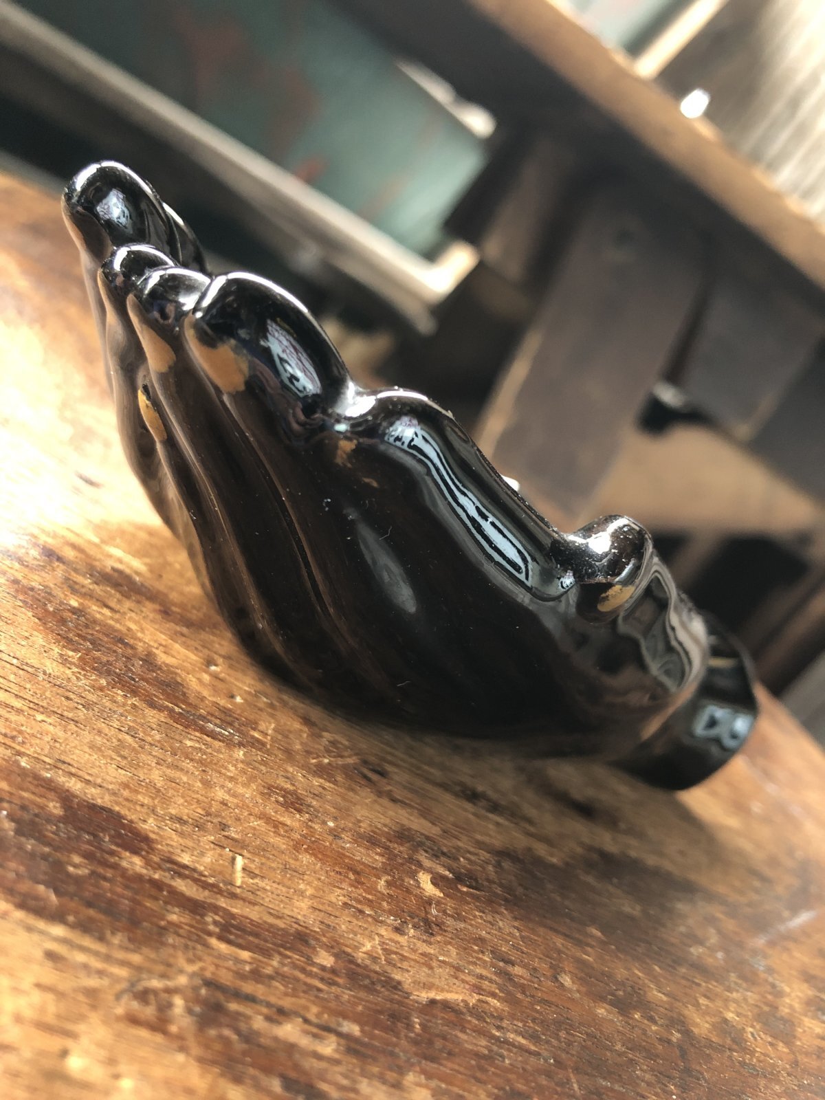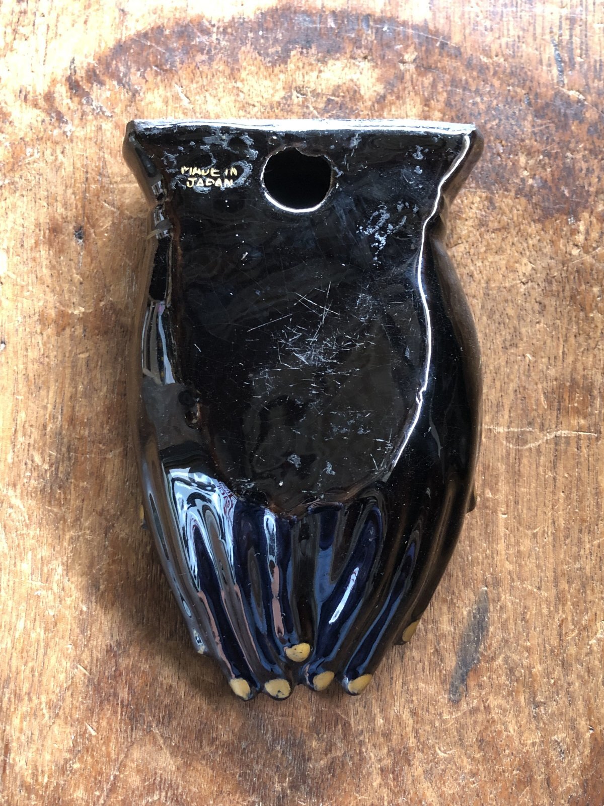 - > 50s Vintage Japan Porcelain Black Hand Ashtray Jewelry Trinket Bowl (A320)