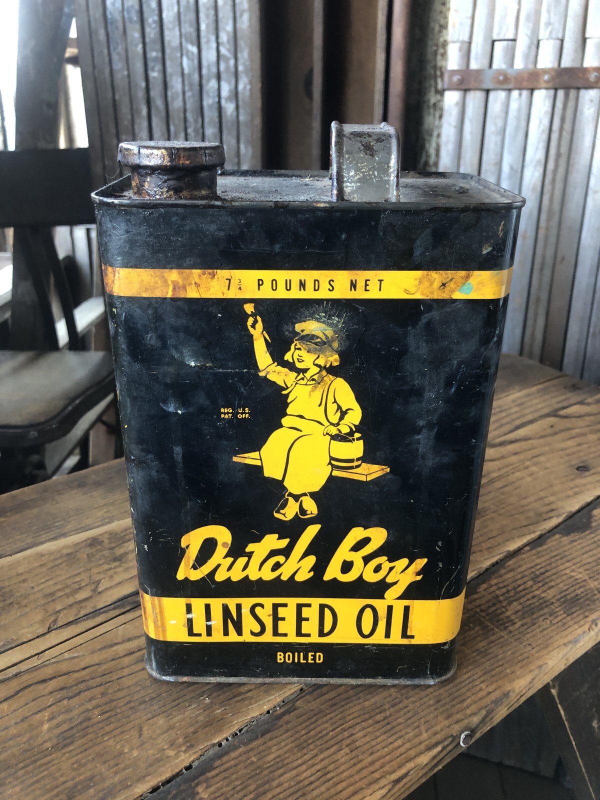 Vintage Dutch Boy Paint Linseed Oil 7 3/4 Can (A322)