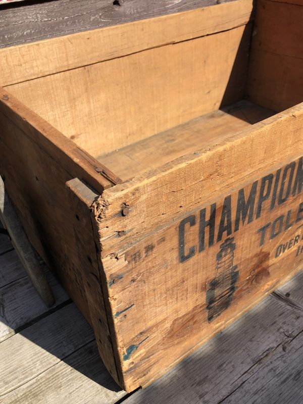 RARE! 30s Antique Champion Spark Plug Dealer Delivery Wooden Crate (C074)