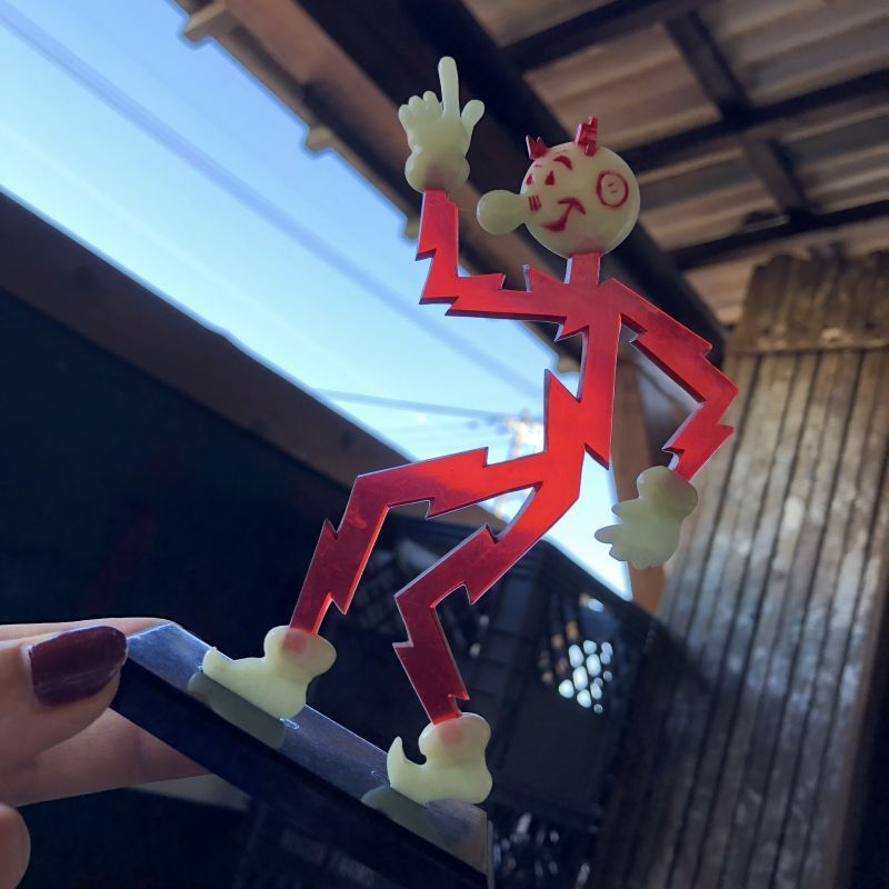 〜50s Vintage REDDY KILOWATT Standing Business Card Holder Figure Red w/Black Stand (M168)