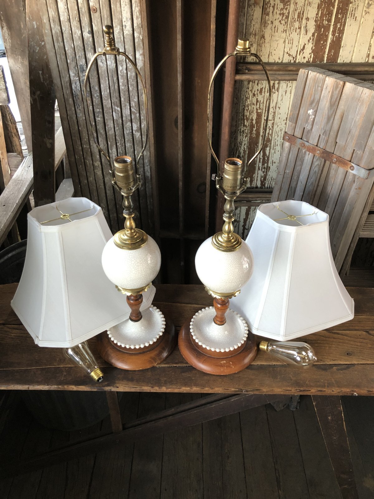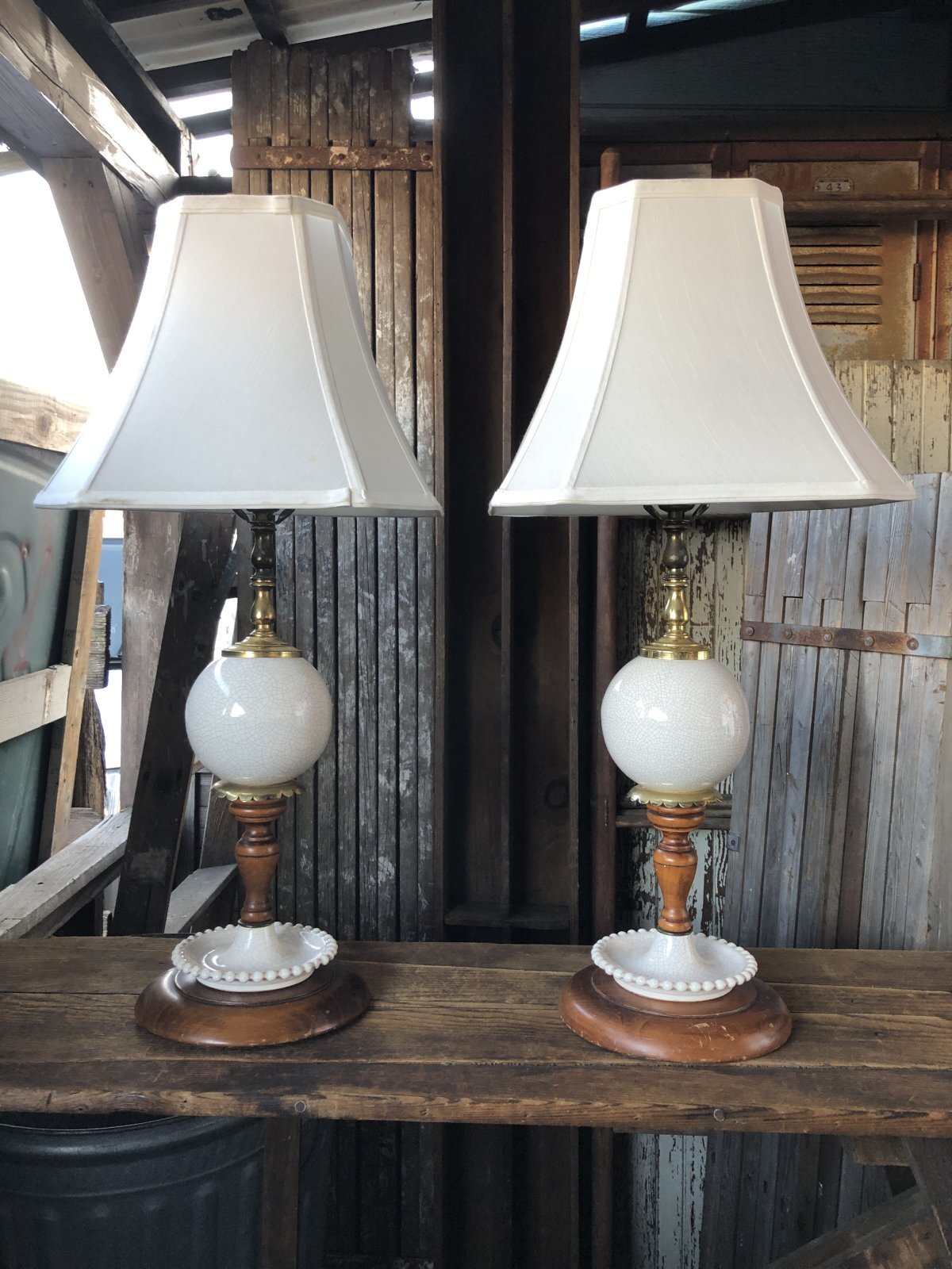 Vintage MCM Wood x Ceramic Table Lamp Set (A128)