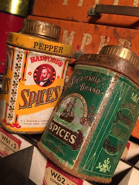 ソルト&ペッパーのビンテージ缶です。