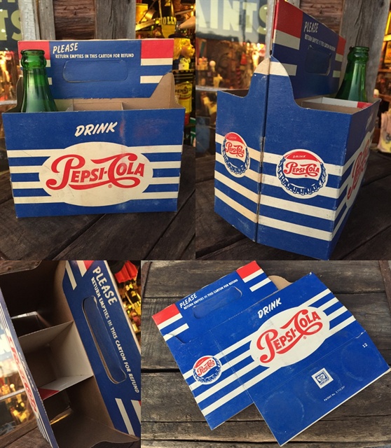 Vintage Soda 6-Pac bottles Cardboard carrying case / Pepsi (MA318)